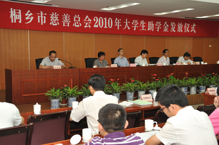 827日下昼,,,,,,,,桐乡市慈善总会2010年大学新生助学金发放仪式在市政府举行,,,,,,,,ca88官方唯一网站股份也响应招呼起劲捐钱助学。。。。。。图为董事长沈耿亮代表ca88官方唯一网站股份公司出席了助学金发放仪式。。。。。。