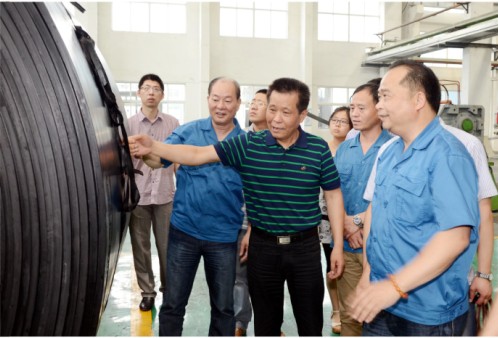 随后,,,,,,,池晓明主席一行又旅行了公司钢丝绳芯运送带车间,,,,,,,对公司的产品工艺流程、产品特征等有了更进一步的相识。。。。。。。