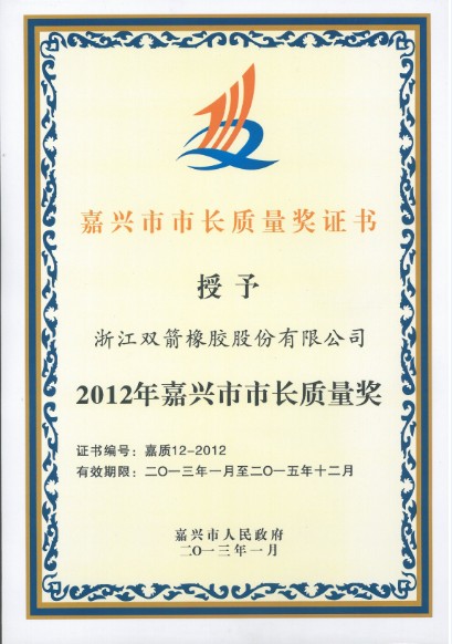 省政府质量奖表扬电视电话聚会竣事后,,,,,在嘉兴市政府行政中心会场,,,,,随后举行了2012年度嘉兴市市长质量奖颁奖仪式。。。。。。。。市向导为我公司及另外两家获奖企业颁奖,,,,,并招呼全市各企业向获奖企业学习。。。。。。。。